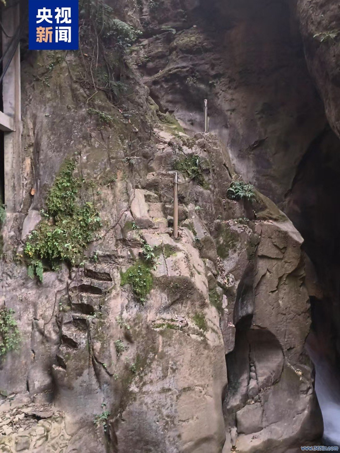 r雷鑫爷爷那辈东说念主拿铁錾(zàn)和锤,打了一些脚蹬手抠的石头坎,一边脚要踩着坎,另一边手要拉着链子,才不错爬上崖去。“我爷爷他们说太危机了,就修了另一条拿凿子凿出来的路,到我爸爸那一代东说念主,又修了像楼梯雷同的栈说念。”