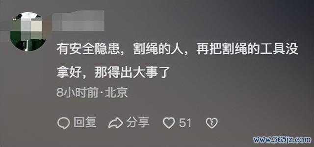 也有网友暗示,有安全隐患,割绳的东谈主,再把割绳的用具没拿好,那得出大事了