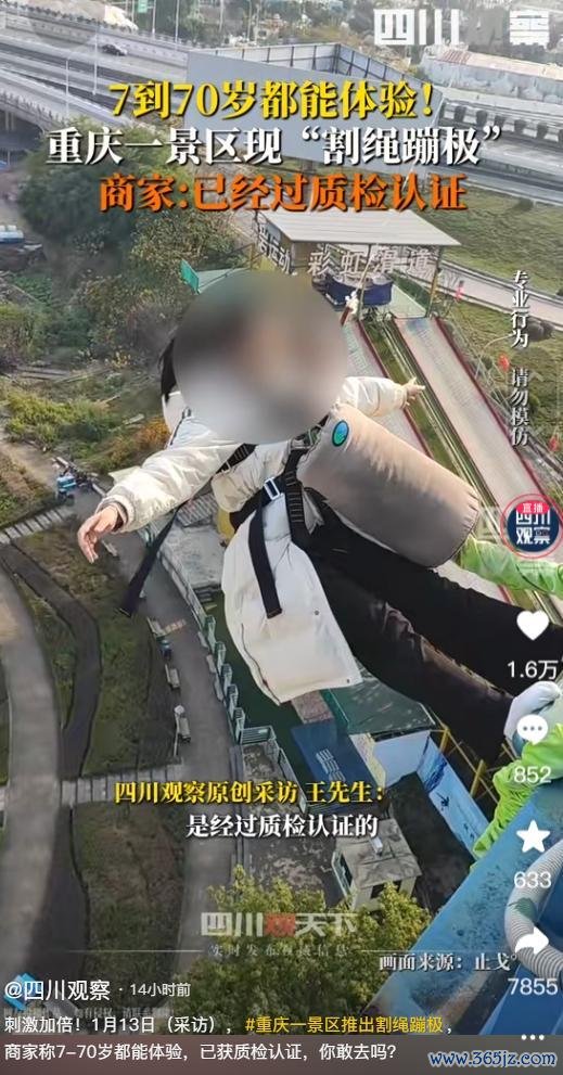 近日,重庆一景区为了加多搭客体验,推出了“割绳蹦极”样式,好多网友打飞的已往打卡。