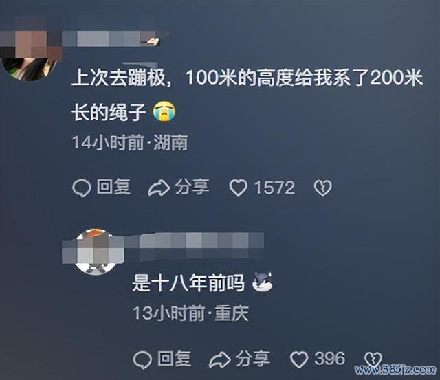 有网友辱弄,前次去蹦极,100米的高度给我系了200米长的绳索