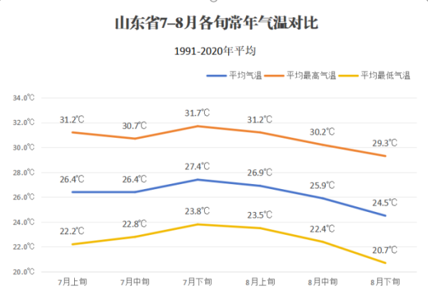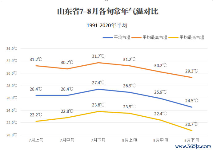 从山东省7-8月各旬终年气温来看,无论是日平均气温,如故从最高气温、最低气温,立秋骨气场地的8月上旬炙热进度仅次于7月下旬,是一年中最热的时段之一。
