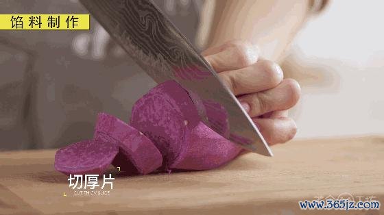 4. 紫薯洗净去皮切厚片,隔水蒸熟。