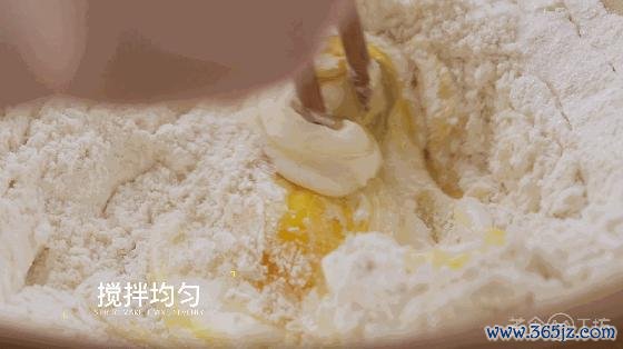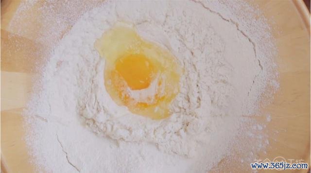2. 倒入鸡蛋液和室温黄油,搅动均匀揉成面团。(必要时可加一丝水)