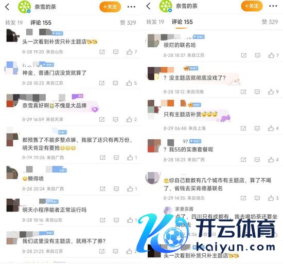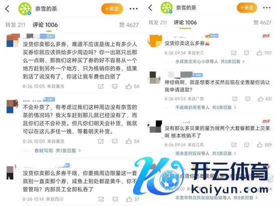 真实吞并时分,奈雪与热点游戏《如鸢》举行了联名行径,又遭到大批耗尽者吐槽。原因在于好多东说念主赶赴线下门店,却发现门店的旁边备货严重不及,而黄牛们手中却有现货且涨价出售。固然奈雪发布说念歉公告,称将加产补货。但由于仅限主题门店兑换,举例北京地区可兑换的门店仅占比15%,又被指“真心不及”。