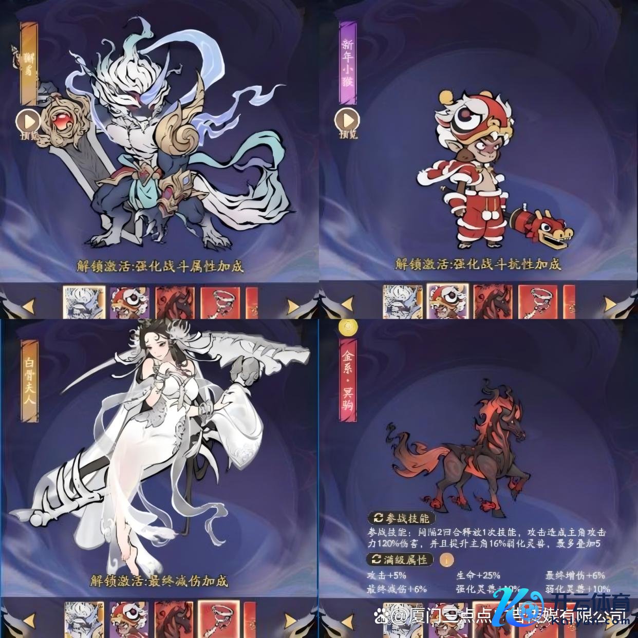 洪荒灵兽:冥驹-金系:手段为攻宠2回合时常伤害数值,每次入手增多16%弱灵可访佛5次,算是啸天的替代品